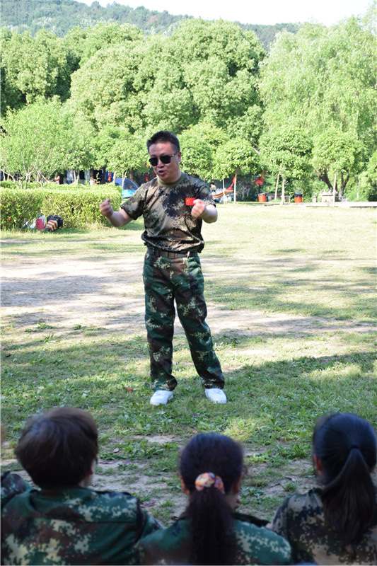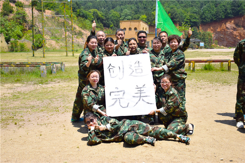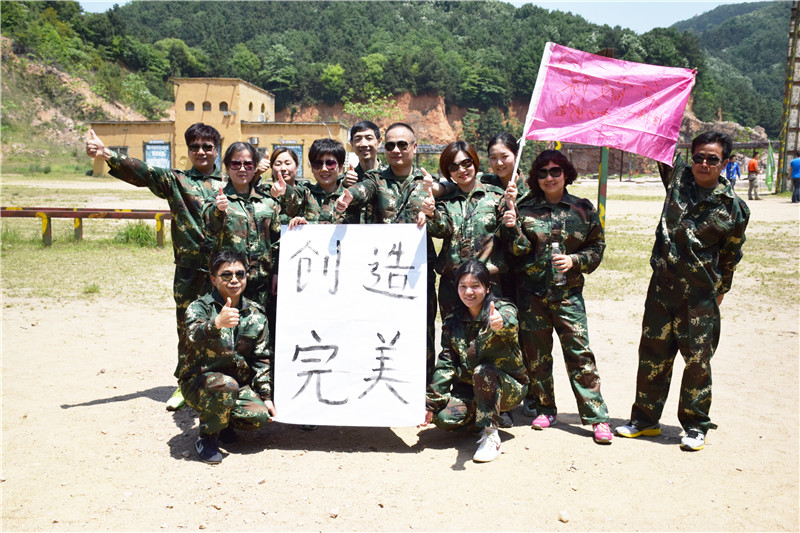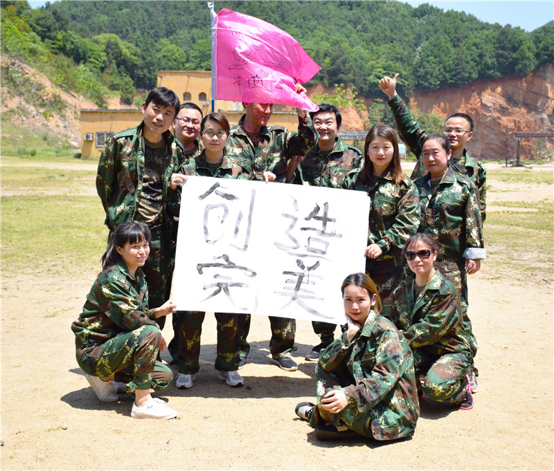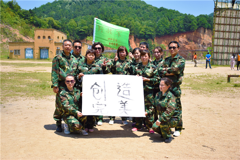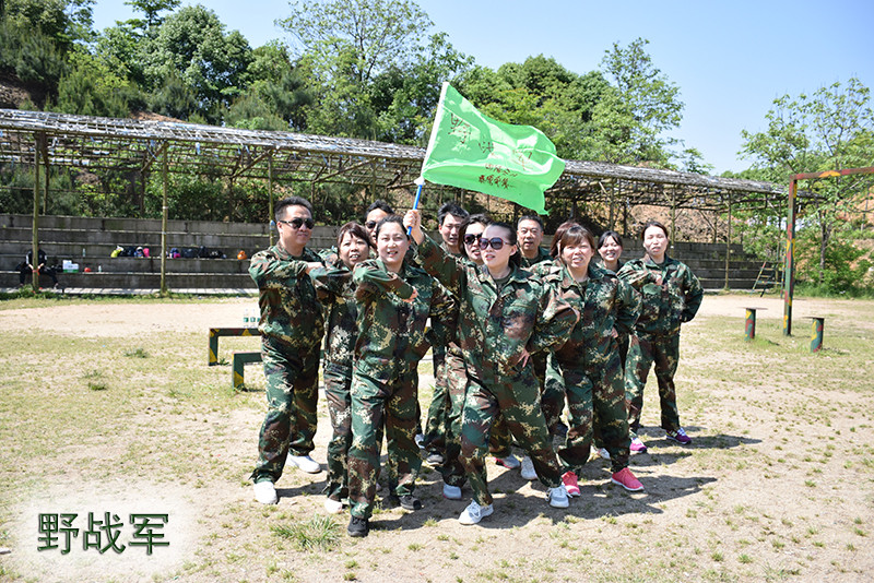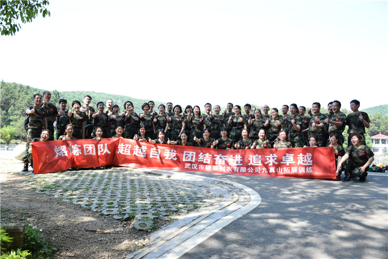 追求卓越”的戶外拓展訓練。早上8:00整,銀萊團隊身著自產的軍訓服裝---胸前有紅旗標的迷彩鳥眼衫和迷彩服,