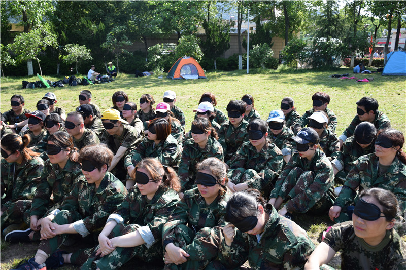 拓展項目《風語戰士》旨在團隊的潛力和毅力訓練:每個人代表一個數字,帶上眼罩,不許出聲,隊員們要按照從小到大的順序排列。