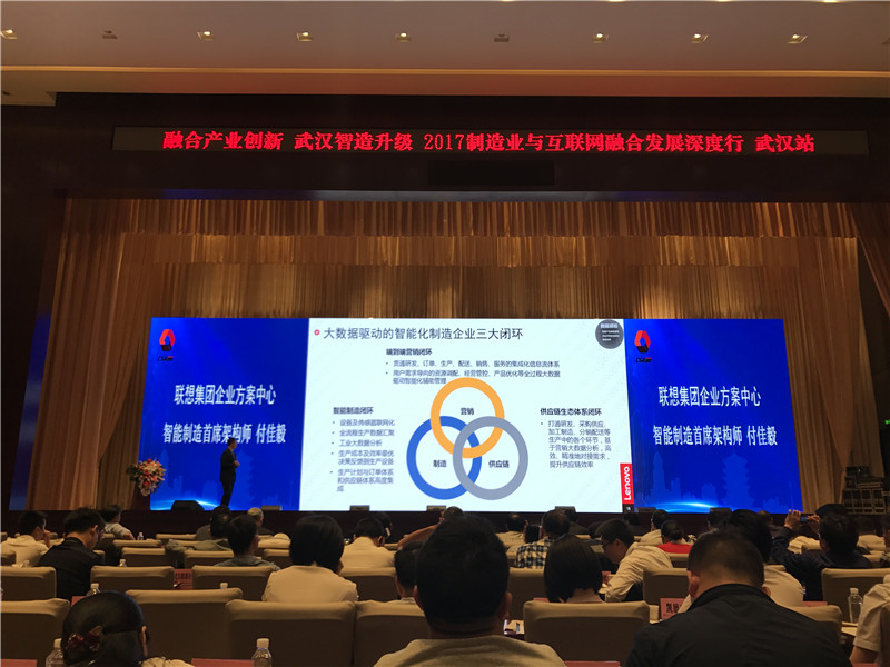 聯想集團企業方案中心職能制造首席架構師付佳毅關于智能化制造企業智造發展的模型以及大數據驅動智能化智造企業三大閉環。