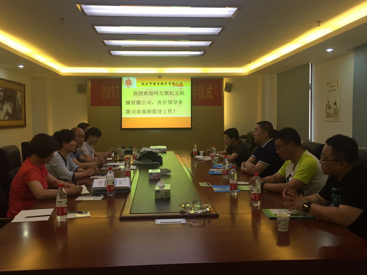 公司總經理張金敏、營銷部彭副總、技術中心郭經理熱情接待新紀元機械有限公司的領導們。