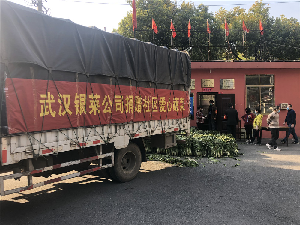 親自隨貨車將剛采摘來的3000斤蔬菜送到南望社區辦事處工作人員的手中,剩下2000斤蔬菜送往黃鶴樓老城區彭劉楊社區。