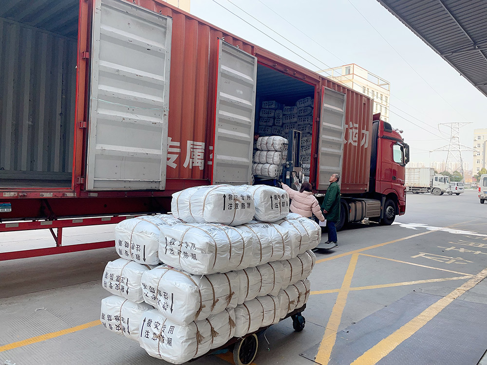 銀萊的工作人員親自跟車前往安徽救災減災中心交貨。