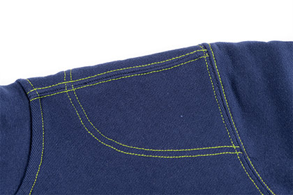 肩部、后領貼、袖肘、護膝的 “框型” 加厚設計,