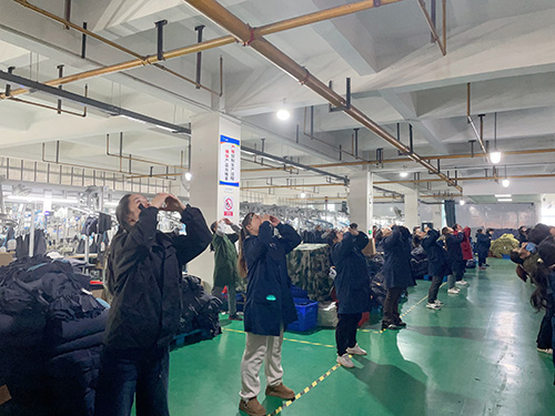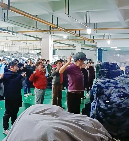 短暫的集體活動成為生產線上一道亮麗的風景線,
