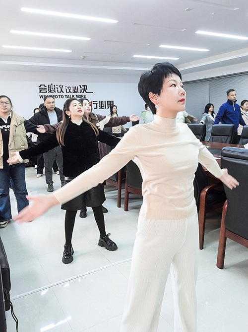 銀萊公司的員工們共同用舒展的姿態,